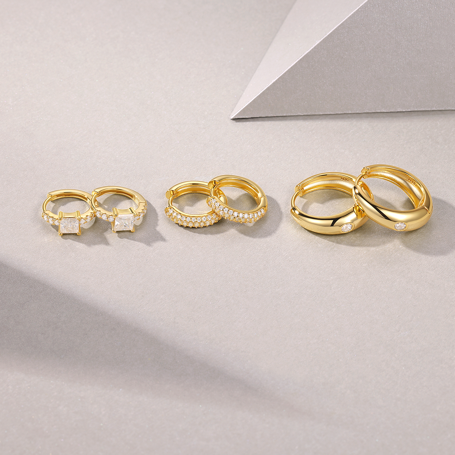 A Luxurious And Fashionable Minimalist Jewelry Earring Set Featuring Top-quality Moissanite Stones, Made Of S925 Silver Electroplated With Gold.