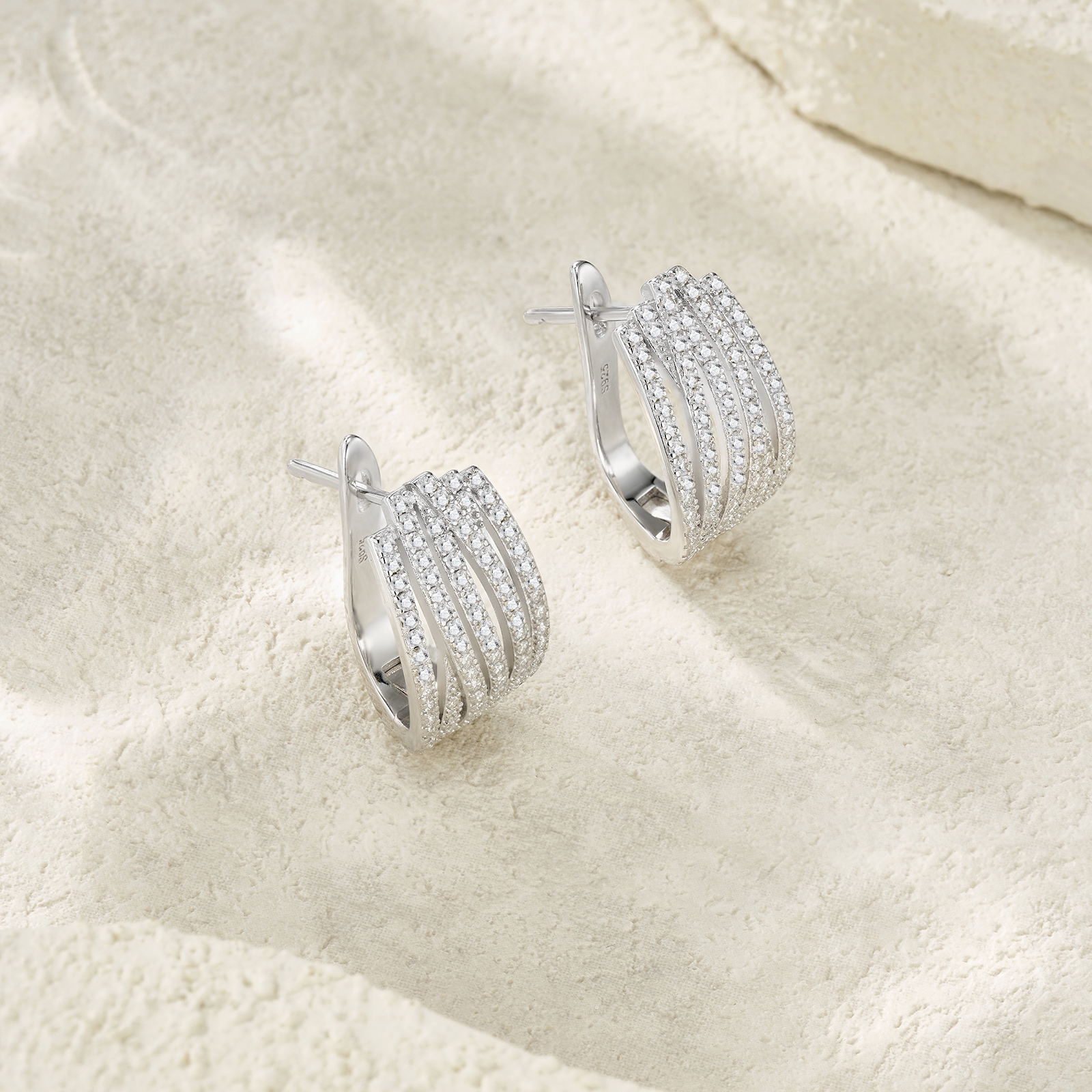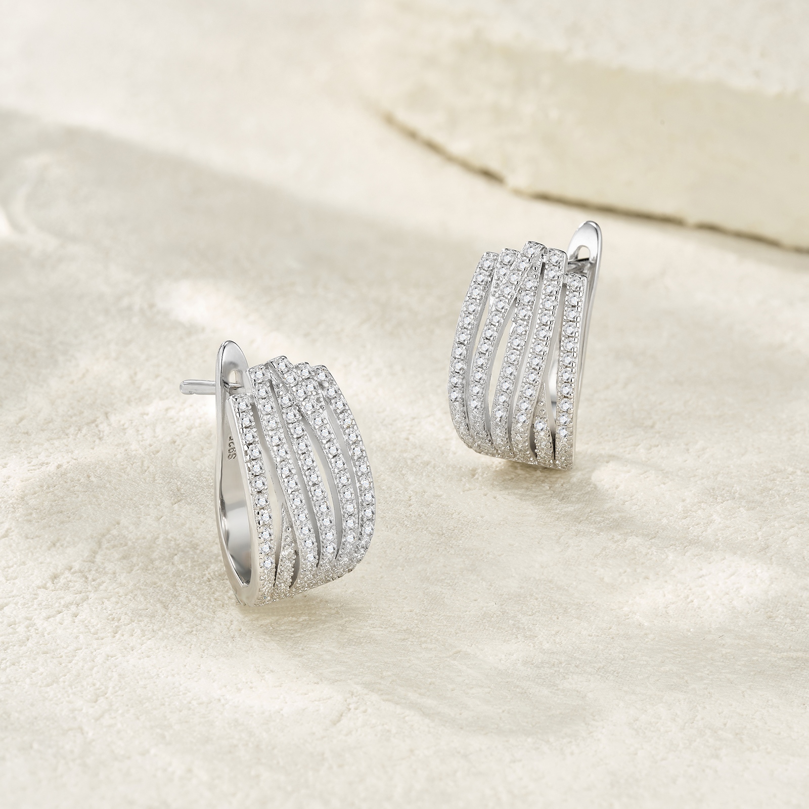 A Luxurious And Fashionable Minimalist Jewelry Earring Set Featuring Top-quality Moissanite Stones, Made Of S925 Silver Electroplated With Platinum.